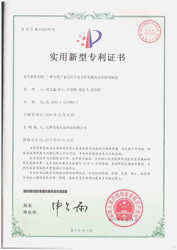 • 一種專用于金光紅紅頭文件的激光打印機用硒鼓